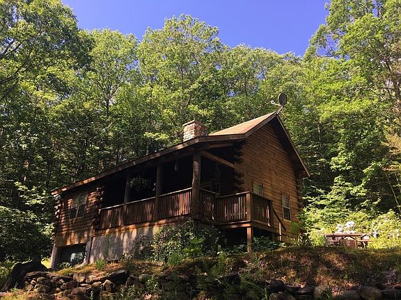 The exterior has recently been stained, the drive way has been redone, recent heating system. If you've been looking for a Log Cabin in the woods....look no further! Stone fire placed living room with vaulted ceiling is to focal point of this home. The serene location will provide you with years of enjoyment. This home eligable for all types of financing.