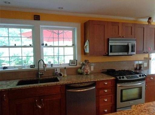 Charm of 1800's school house meets 21st century updates: roof stripped and reshingled 1 yr., vinyl replacement windows, electric updated (200 amps) 5 years, furnace 10 years APO. Large Family Room features gas fireplace. Kitchen completely updated, granite, cherry cabinets, double sink, large island. stainless steel appliances, dining area with french doors to large trex deck. Enjoy screened front porch, nicelly landscaped plus stone wall. Interesting mix of old and new with wood floors thruout.