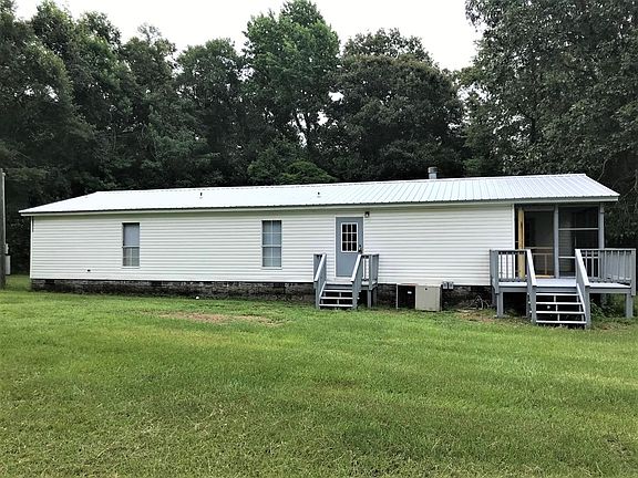 A lot of home for the money! Nice double wide mobile home on 2 acre lot; very private setting; new metal roof; new interior paint; large den with fireplace; kitchen has lots of cabinets and counter space with nice pantry; separate formal dining room and living room; master bathroom has garden tub and separate shower; screened back porch and nice deck on the front of home. Must see to appreciate! THIS HOME WILL NOT QUALIFY FOR FHA FINANCING!