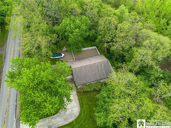 Experience the perfect blend of modern luxury and natural serenity in this exceptional raised ranch, built in 2013 and set on three mostly wooded lots totaling 2.5 acres (measuring 403x372, 174x218, and 335x135). Designed for both comfort and style, this home features spacious, thoughtfully designed interiors and premium finishes throughout. The main level features a contemporary kitchen complete with a breakfast bar, stainless-steel appliances, and a walk-in pantry. Vaulted ceilings enhance the formal dining room and living room, which is anchored by a striking double-sided gas fireplace—shared with the luxurious primary bedroom. The primary suite includes an updated full bath and walk-in closet. Additional main level highlights include a den/study, a laundry room, and a convenient half bath. The fully finished lower level offers impressive versatility with a second kitchen featuring custom-built cabinetry and stainless-steel appliances, a spacious great room with deck access and an outdoor storage closet, two large bedrooms with full baths and walk-in closets, utility room, and a bonus room currently used as a gym (gym equipment negotiable). Additional features include custom window blinds, a tankless hot water system, A/C wall units, radiant floor heating, a security system, an attached two-car garage, outdoor storage shed, and a vinyl fenced-in backyard area with attractive stonework. Enjoy picturesque views of Canadaway Creek from the expansive two-tiered deck—an ideal setting for both relaxation and entertaining guests. The creek also provides excellent fishing opportunities, adding to the property’s outdoor appeal. This stunning home perfectly combines modern appeal with the tranquility of nature. Appliances (except kegerator), dresser in bedroom-3 closet, laundry room cabinet, and main level barstools stay. Showings begin on Saturday, May 31st at 1:00 pm. Negotiations begin on May 31st at 6:00 pm.