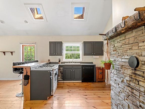 Unique property in the Lakes Region of Alton, New Hampshire. This 13 acre property will exceed your wildest dreams featuring a swimming pond with waterfall, 18 hole disc golf course, trails throughout for ATV, snowmobile access to trails, ski, sledding hills, ice skating & camping spots, RV hook-up, and much more! Main house has Three bedrooms and one bathroom, gorgeous hardwood flooring, vaulted ceilings, walk-in pantry, an abundance of natural light, and spacious open floor plan. There is a second small, unfinished home on the property that has great potential. Many opportunities for Airbnb, camping rentals, or vacation property. The solar panels produce enough electricity for the year. While this property is completely private, it is also in a prime location near shopping, 2 miles from Lake Winnepesaukee, Merrymeeting Lake and Marks Memorial Forest.