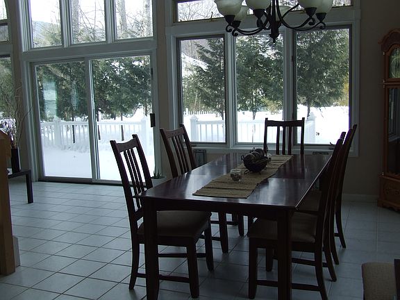 Graciously set home with dramatic windows and 3 story brick turret! This home features over 3200 sq ft of well designed living space including open floor plan with dramatic cathedral ceiling and arched windows in the living/dining area that opens to a spacious kitchen with island, maple cabinets, and granite counters. First floor bedroom ensuite built into the turret featuring steam shower and set tub. Off the kitchen is half bath and separate laundry/storage room. Radiant floor heating highlights the first floor. Second level features another bedroom ensuite, additional bedroom, and full bath. Open area family room with gas fireplace. Many options for home office. There is an attached 3 car garage. This home is in a great setting with over one acre of landscaped grounds, mountain views, and beautiful in-ground pool with great patio area.