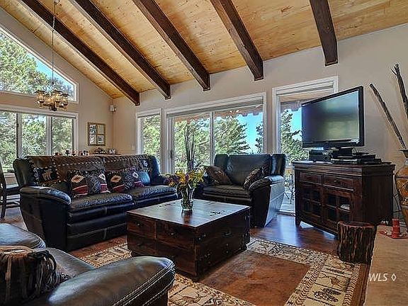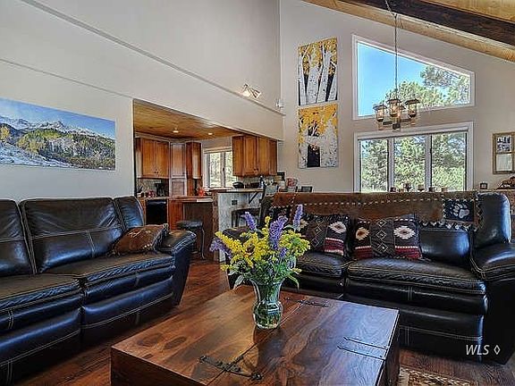 Spectacular setting for this 3 bedroom, 3 bath home, property boasts massive Ponderosa w/ a sprinkling of Blue Spruce & Aspen. Your own private forest has mountain & valley views. With a nice floor plan, the main home has kitchen, dining & living area, 2 bedrooms & 2 baths & a huge wrap-around deck. This home was tastefully remodeled w/ custom tile work throughout; rustic wide plank laminate wood floors add an informal casual feel. You can enjoy a crackling fire from the impressive moss rock fireplace & take in the gorgeous views from the large windows & sliding glass doors to back deck. The upper level has nice-sized bonus room w/ a ¾ bath and door to upper level deck, views from here are amazing! Guests may not want to leave after seeing the charming 315 SF guest cottage. The décor is informal but stylish; it has plenty of room for a king-sized bed, desk/TV area, nice hickory bar/storage unit & an exceptional ¾ bath w/ a beautiful bronzed glass sink. It also has its own deck & a separate 150 SF storage area, big enough for your ATV. Great fenced yard for your pets. There's year 'round access to this small community of homes, so it can be used for either vacation or full-time.