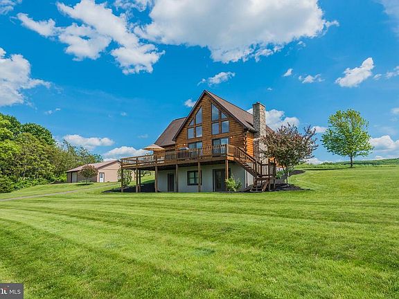 This stunning traditional style log siding home situated on a magnificent 4.21 acre lot with panoramic mountain views in Jackson Township is sure to please! A paved drive enters the property to arrive at an attractive 2,140 square foot home built in 2002. As you enter this home you're welcomed by gleaming hardwood floors in the kitchen/dining room. The kitchen offers Corian countertops, oak cabinets, peninsula with barstool seating, trash compactor, stainless steel appliances, double sink and recessed lighting. As you pass through the kitchen/dining area you enter the great room with electric fireplace insert, vaulted ceilings, loft area, and boasts plenty of windows for natural light and breathtaking views! The 1st floor master suite offers a large bedroom with wall to wall carpeting, pocket door leading into the master bathroom, walk-in closet, stand up shower, American Whirlpool tub, double vanity sink and tile flooring. The 1st floor also offers a laundry room and powder room. The 2nd floor has 2 additional bedrooms, one with vaulted ceiling and the other with a walk-in closet. 2nd story loft area and full bathroom with tile floor, single vanity sink, and tub/shower combo. This home also offers a full unfinished walkout basement with roughed in plumbing and wood burning fireplace. The 30x48 pole building is in excellent condition with cement flooring, steel entry door and 2 garage doors. Please call me to schedule your private showing NOW before it's too late.