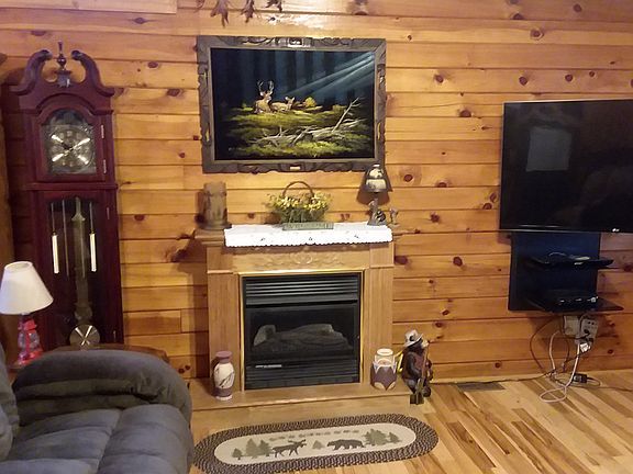 Gatlinburg in Bristol TN. Cute as a button log home with private backyard. This 3BR 2 Bath home has hickory hardwood floors in main living and ceramic tile flooring in the bathrooms. Open floor plan allows you to entertain with ease. Enjoy the back deck that overlooks a wooded area and is very private. Below is a screened in deck where you can relax and enjoy a nice breeze from the woods and ceiling fan. The covered front porch is cozy and has a porch swing. Home is located near Bristol Motor Speedway and can easily be rented for Spring race. All information taken from CRS and owner and must be verified. Must have confirmed appt.