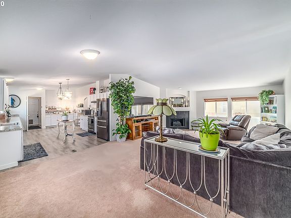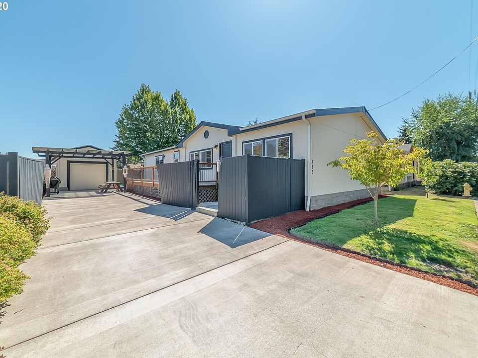 You are going to love this move in ready & well maintained manufactured on it's own land. 3 bed/2 bath open concept floor plan. Remodeled kitchen with new black stainless steel appliances, white cabinets & woodgrain vinyl flooring large living room w/fireplace. Master suite has a walk-in closet & soaking tub! New Roof 2017 & heat pump just installed this year! Private yard with detached garage, large deck and covered pergola. Low property taxes!