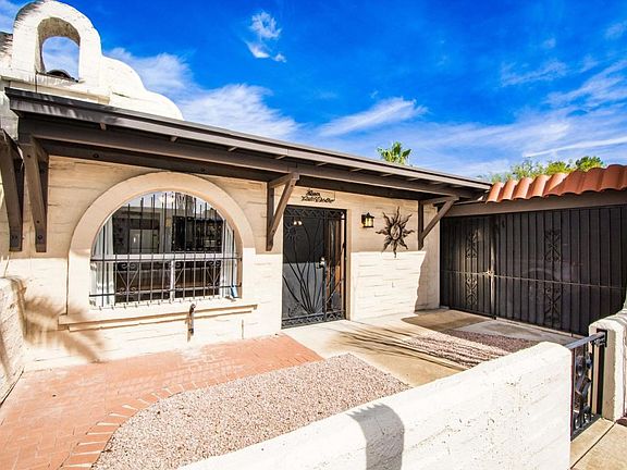Charming Single-Level, (No Steps) Hacienda Style End Unit Townhouse far away from traffic noise but convenient to all the services city living affords. Stunning new neutral stone-look ceramic floors and carpeting. Designer Front Door & Anderson Iron Security doors. HVAC & Water Heater New in 2011.Spacious Front & Rear Patios with All NEW patio covers. Huge master suite w/walk-in closet. Free flowing Living Room, Family Room & Dining Room. Very private back patio w/peek-a-boo mountain views. HOA covers Property & Liability Insurance, Water, Sewer, Trash, Pool & Spa.Lots of guest parking adjacent to the property. A great place to live or just spend the winter.