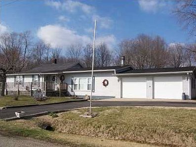 A lovely country location with a 2 plus acre lot, a 30 x 40 pole barn with concrete floors and electric, a 16 x 32 inground pool, a huge great room with a beautiful oversize fireplace with a gas insert and a separate woodbox. It also has a full unfinished basement. The sunroom on the back leads out to the pool and backyard area. Beautiful country location, paved road, it's a great deal and can be yours for $119,500. ( The seller will give a $4,000 allowance at closing for a new roof )