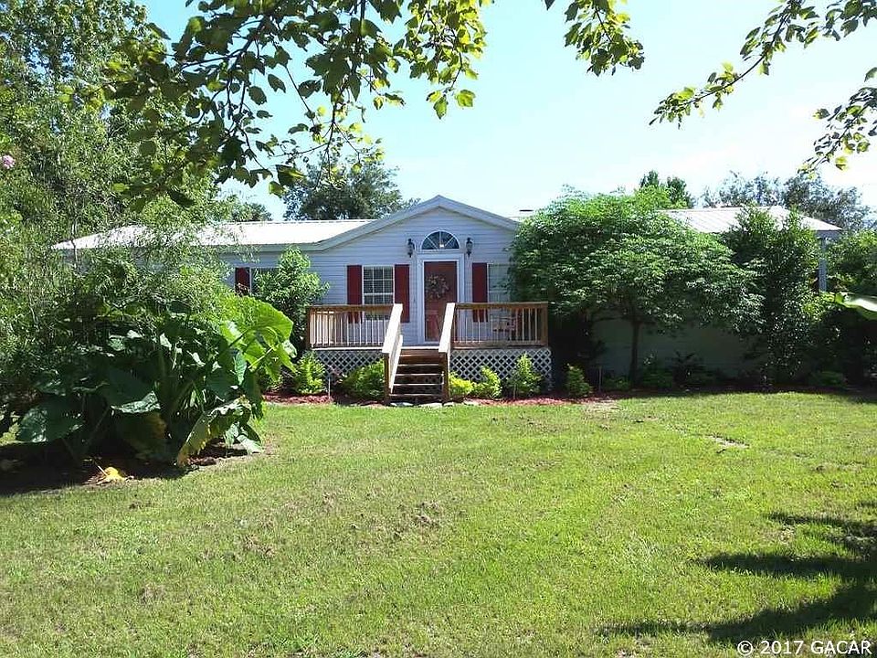 Location is all-important in real estate, and this attractive home is just 4 miles NW of High Springs, is halfway between Gainesville and Lake City, and only a couple of miles from Rum Island Park on the Santa Fe River. It's also in Columbia County with its lower tax rate. Exceptionally well-maintained and super clean, the home is a top-quality triple-unit Skyline custom home with vaulted ceilings, textured drywall throughout, and a new metal roof. At the end of a long banana plant-lined driveway, the home isn't visible from the road, offering great privacy. It's surrounded by a variety of mature trees and shrubs, including 300 banana plants, and has a lovely flower garden just outside the spacious back screened porch attracting hundreds of butterflies each summer day to compliment the daily visits from deer. Features include a fireplace, laminate wood flooring throughout, and transom windows for extra light. New HVAC system installed Feb 28th, 2018. Newer items include: Front & side porches, dishwasher, microwave & Maytag washer & dryer and refrigerator. There's also a 24x36 workshop with concrete floor. Enjoy a retreat to natural beauty on this exceptional property.