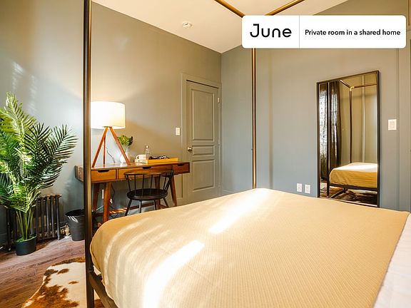 This Queen room in West Harlem is available on a 12 month lease or a flexible short term (31 to 364 days) lease. You pick your custom start and end date. Monthly rent rate is determined by furnishing preference, move-in date and move-out date. Speak to a June representative for recommendations on the best stay duration for the lowest rate.