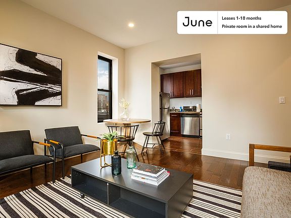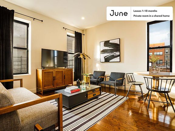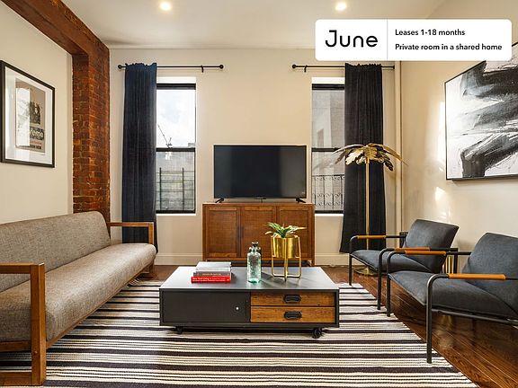This Queen room in West Harlem is available on a 12 month lease or a flexible short term (31 to 364 days) lease. You pick your custom start and end date. Monthly rent rate is determined by furnishing preference, move-in date and move-out date. Speak to a June representative for recommendations on the best stay duration for the lowest rate.