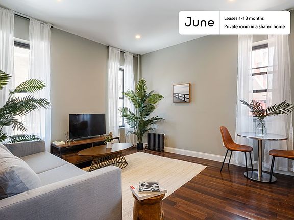 PLEASE NOTE: This is a private room in a shared apartment. You will have your own bedroom and shared common areas (kitchen, bathroom, etc.) with other residents. Queen bedroom in a 4 bedroom / 1 bathroom apartment! This Queen room in West Harlem is available on a 12 month lease or a flexible short term (31 to 364 days) lease. You pick your custom start and end date. Monthly rent rate is determined by furnishing preference, move-in date and move-out date. Speak to a June representative for recommendations on the best stay duration for the lowest rate. Amenities of this home: Dishwasher, Furnished Common Areas, Wi-Fi - Paid separately (High-Speed), Elevator, Guarantors Allowed, 32-inch Flat-Screen TV, Laundry - Paid separately (in building), Hardwood Flooring, Microwave, Oven, Refrigerator, also, this unit is conveniently located, several local parks, restaurants and bars are just minutes away. About June Homes: Welcome to the easiest rental experience of your life. Rent furnished or unfurnished apartments on a 12 month lease or a flexible short term (31 to 364 days). As a resident, you'll have access to 24/7 support and monthly cleanings of the home's shared spaces. Sign up now to apply online for your next home with June. Brokers welcome! Contact us for more details. Use this listing ID when speaking to June team: #213 C