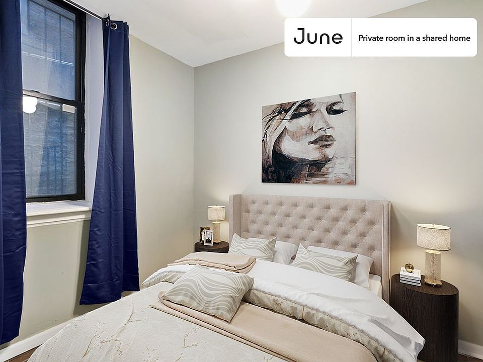 PLEASE NOTE: This is a private room in a shared apartment. You will have your own bedroom and shared common areas (kitchen, bathroom, etc.) with other residents. Full bedroom in a 2 bedroom / 1 bathroom apartment! This Full room in West Harlem is available on a 12 month lease or a flexible short term (31 to 364 days) lease. You pick your custom start and end date. Monthly rent rate is determined by furnishing preference, move-in date and move-out date. Speak to a June representative for recommendations on the best stay duration for the lowest rate. Amenities of this home: Furnished Common Areas, Wi-Fi - Paid separately (High-Speed), Elevator, Guarantors Allowed, 32-inch Flat-Screen TV, Hardwood Flooring, Microwave, Oven, Refrigerator, also, this unit is conveniently located, several local parks, restaurants and bars are just minutes away. About June Homes: Welcome to the easiest rental experience of your life. Rent furnished or unfurnished apartments on a 12 month lease or a flexible short term (31 to 364 days). As a resident, you'll have access to 24/7 support and monthly cleanings of the home's shared spaces. Sign up now to apply online for your next home with June. Brokers welcome! Contact us for more details. Use this listing ID when speaking to June team: #889 B