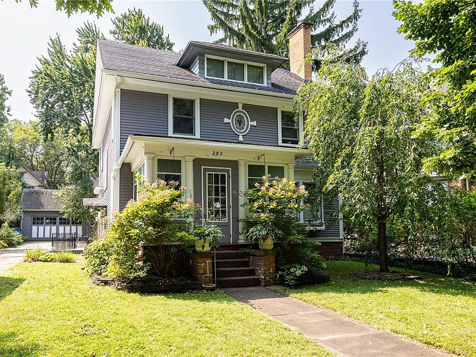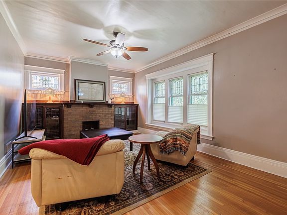 Opportunity knocks! This historic 1900s home was once a duplex, that could be converted back if desired! Would make a fantastic In-Law apartment! FILLED with one of a kind CHARM! Beautiful leaded glass and natural woodwork throughout. Spacious screened in porch features a cozy wood ceiling and regal columns. Vestibule boasts original mosaic tile floor and wooden doors with glass detail. Living room features hardwood flooring, built-in bookcases, and crown molding. Dining room features stained glass windows and custom built wood trim window seat. Cozy eat-in kitchen features built-in booth, wood trim ceiling, beams and custom cabinetry. Charming kitchen passthrough! Secondary kitchen with cherry cabinetry. Finished attic space with knotty pine ceiling and recessed lighting! Outside you will find a partially fenced in yard, complete with brick patio, mature trees and covered back porch. Detached two car garage. Twilight OPEN HOUSE TUESDAY 8/27/24 from 4:30PM-6:00PM. Delayed negotiations until Wednesday 8/28 at 12pm.