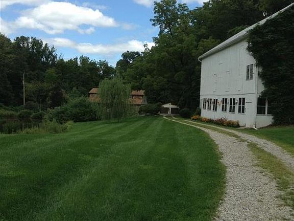 Secluded 2-story home on 9 acres. Home boasts wood flrs, country KIT w/ granite, stone FP, formal LR & DR. Central vac, zoned heat, whole-house fan, huge upstairs BRS w/ WIC, finished BSMT w/ wet bar & walk-out. 2-car heated GAR. Land has stocked pond, bank barn, stream, separate GAR/workshop, shed, gardens, trees & wildlife. Still close to everything.