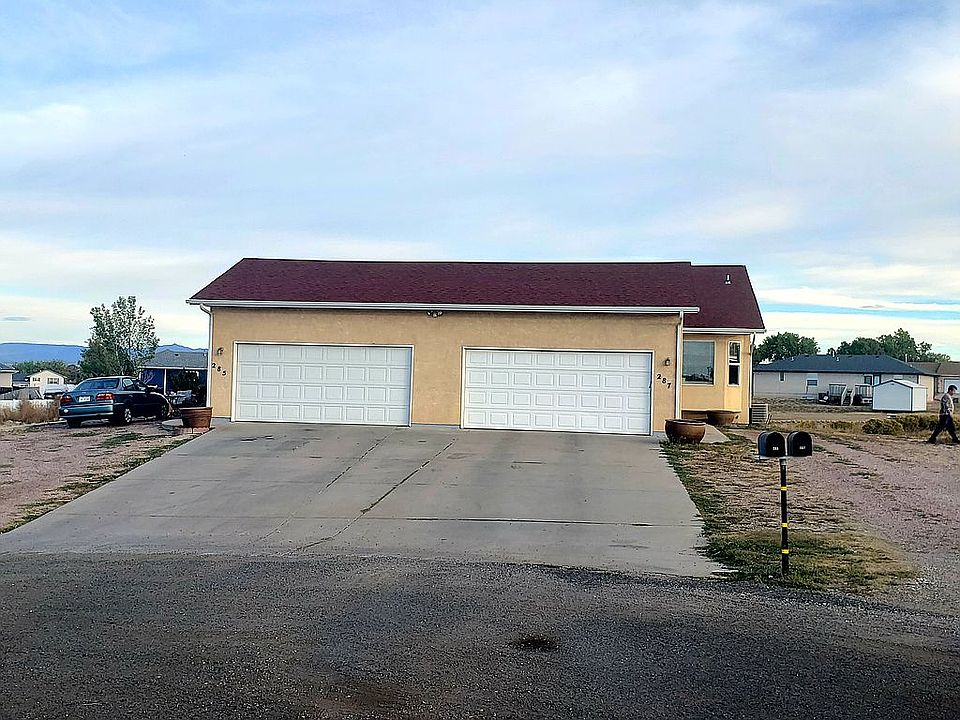 Very spacious duplex with 3 bedrooms and 3 full bathrooms per unit. 13' Vaulted ceilings gives it the open feel. Full finished basements, Bay windows in the kitchens, Walk in closets, Large master bedrooms with 5 piece master baths and jet tubs, Spacious secondary bedrooms. Large laundry rooms. Covered front porches, Central air, Natural gas, Amazing views, RV and Boat parking, Fully insulated and Finished garages with 12 foot ceilings, garage door openers, and a lot of built in storage shelves in the garages. Also, many extra receptacles were added to the garage during the finish. Motion detectors on both units and in driveway. New roof and New deck both completed in 10 / 2017. Unit 285 has new vinyl flooring and carpet. Unit 287 unit has new carpet in the upstairs and a new dishwasher. Recent furnace services. Washer and dryer will stay in unit 287 and Washer will stay in 285. Very rare duplex with more square feet in one unit than most houses in Pueblo West. The property has an amazing rental history.. Excellent location. Less than 5 minutes to the Reservoir and Shopping. Million dollar panoramic views of Pikes Peak, Cripple Creek, Greenhorn, and Canon City. Trex deck and metal railings. Great investment property.
