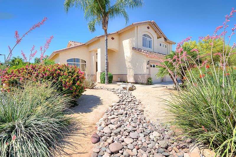 Prime Location - nearly 1/3 acre homesite w/ community greenbelt & park right next door! Move-in ready with all new carpet, updated paint, newly refinished cabinets, gorgeous granite counters, neutral tile & plantation shutters! Kitchen has stainless steel appliances & includes refrigerator & wine fridge, One bedroom down, master & 3 more bedrooms up. One bedroom is nearly the size of the master - would make a great bonus/gameroom! The backyard is pefect for entertaining with a full length covered patio, HUGE lot with pebble tech diving pool and spa. Corner lot, RV gate with a large storage side yard. One new AC unit, plus new roof (one small section of roof is original and in good shape). Sellers are relocating for work and this home is priced to sell quickly! Don't miss out!