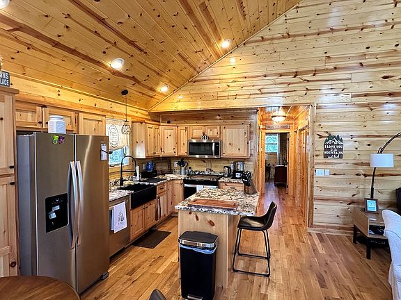 Murphy NC - Furnished - Fiber Optic Internet - Underground Utilities - Located in Woodcrest in Murphy NC - Beautifully Furnished - 2Bedroom 2Bath Ranch Style Home on Large Crawl Space for Extra Storage, A Metal Roof, Log Siding & a  Full Covered Back Porch Overlooking a Private Wooded Setting Plus a Decorative Firepit for relaxing evenings & enjoying the warm crackling fire.  Inside the Home is All Wood Interior, Upgraded Matte Oak Wood Flooring, Tall Vaulted Ceilings with Beams For a Rustic Mountain Cabin Style Home, Large Open Great Room with a Stack Stone Gas Log Fireplace plus glass slider door to Covered Back Porch, A Large Dining Area w/ a Free Standing Kitchen Island, Upgraded Granite Counter Tops, The Main Floor also consists of a Large Master Bedroom with a Rectangle Transom Window over the Bed for Extra Ambient Lighting & Slider Barn Door to Master Bath,  plus a  Glass Sider Door from the Bedroom for Access to the Covered Back Porch, There is also a  Large Guest Bedroom  And Guest Bathroom.  This Home is Fully Furnished with Beautiful Furnishing and The Home is move in Ready.  This Home is only about 9 miles West from Downtown Murphy NC and Easy Access to all The Amenities of Shopping, Restaurants, Hospital and More. Cherokee County has 92,000+ Acres of US Forest Service, #2 Large TVA Lakes ( Lake Hiwassee & Lake Apalachia )  for Fishing/Boating & Water Sports, there is also Harrah's Casino & Henn Theater for Night Life and More. Also you will find there is easy access from this home to The Nantahala White Water Rafting, The Ocoee White Water Rafting, The Tail of The Dragon, The John C Campbell Folks School, Plus these areas: Blue Ridge GA, Blairsville GA, Helen GA, Hiwassee GA, So if you are Looking for a Part Time Home or Vacation Home, Or A Private Mountain Home to Escape Hot Weather or Extreme Long Winters! You Found it! This Home has a Lot to Offer! Give us a Call, I think you will love this home as much as I do and I Can't wait to show you this home.