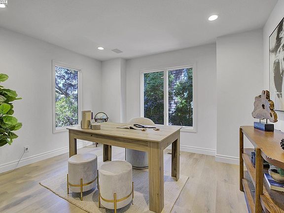 This exceptional home boasts breathtaking, framed views of San Francisco, seamlessly blending luxury with tranquility. Designed for both relaxation and entertaining, the expansive 1,000+ sq. ft. deck is a true showstopper, featuring a hot tub, sauna, outdoor shower, built-in kitchen, and a charming cottage connected by a picturesque bridge.Inside, soaring ceilings and transom windows bathe the living room in natural light, offering serene vistas of the surrounding oaks. The dining area flows effortlessly into a chef’s kitchen, complete with a spacious island, Thermador gas range, Bosch dishwasher, and an oversized pantry. Modern conveniences abound—wired Ethernet ensures high-speed connectivity, while built-in ceiling speakers and surround sound create an immersive ambiance. The media room is perfect for movie nights or quiet relaxation. The primary suite is a private sanctuary, featuring its own deck, a gas fireplace, dual closets, and a spa-inspired bath with a jetted tub. Sustainability meets convenience with a 2.8 kW solar panel system, Tesla Powerwall, and an EV charger. Ideally located with easy access to Highways 92, 101, and 280, this home offers the perfect balance of seclusion and accessibility