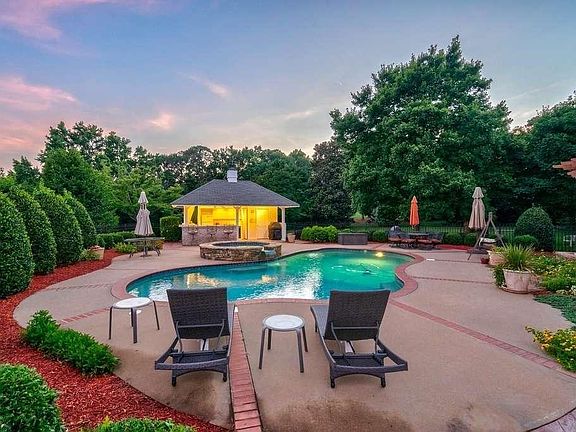 Welcome to 2850 Camp Branch Road in Buford, Georgia! This luxurious custom estate offers high end amenities with a well thought out floor plan that allows for relaxed daily living. The gated entrance to the home offers you the next level in security and privacy. This custom home is set on a beautiful lush 3.42 acre lot featuring a pool, hot tub, cabana house with kitchenette, half bath and a plethora of seating areas in the gorgeous outdoor entertaining space. Located behind the main home is a very large storage structure where you can store your RV, boats, tractors and more! The storage structure features a screened in full kitchen and full bathroom. Entering the main home you walk into a stunning foyer with a formal living room on your left and straight ahead a beautiful formal dining area that accommodates 12+ seat dining with a half bath off to the side. On the right wing of the home you will find 2 spacious owner's suites each with a large en-suite and walk-in closet. In the heart of the home you find a gorgeous open concept kitchen with commercial grade appliances, a beautiful family room with a show stopping 20 foot floor to ceiling stone gas fireplace, quaint breakfast nook with views of the pool and a large laundry room featuring built-ins and a subzero freezer. Entering the left wing off of the family room you will find a breathtaking sunroom with views overlooking the pool area and the meticulously manicured property, access to the 3 car garage and another half bath with access to the exterior pool area and pool storage closet. On the upper level you will find 4 spacious bedrooms each with generous closets, 3 full baths, a great loft space and access to a lovely unfinished attic space above the garage with 5 windows for the possibility to add even more living space to this home! The unfinished daylight basement offers interior and exterior access, it is plumbed, framed and ready for you to make this amazing space your own! There are too many features, upgrades and spaces to list, come tour this gorgeous estate and fall in love with everything this custom home offers.