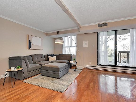Steps from the Ottawa River, this boutique style condo building is ideal for someone looking for a spacious condo in a quiet, low-rise building (with an elevator). Presenting a ground floor, corner unit that offers views of the Ottawa River and a fantastic layout. You are welcomed into the foyer before moving to the open concept living and dining room. A renovated kitchen with plenty of cabinetry, natural light, and peninsula eating area. You will appreciate the space to accommodate full size furniture, which is rare find in condos! A primary bedroom with ensuite and closet space, and a large second bedroom with an additional full bath for guests. Freshly painted - ready for you to move in and enjoy. An amazing outdoor patio overlooking the River, minutes from trails and parks. In-suite laundry and storage, along with a separate storage space and indoor parking. 48 Hr Irrev on offers. 2021-04-30