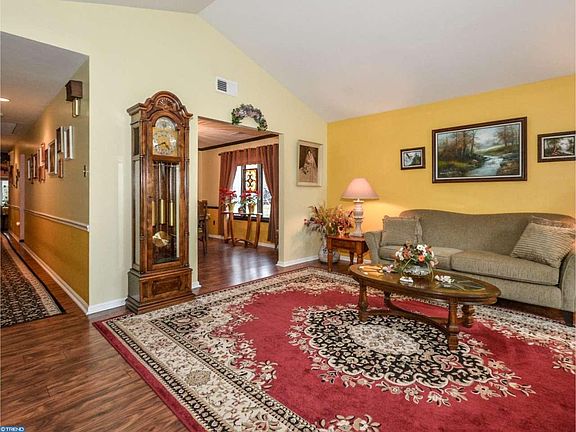 Beautifully maintained Custom built ranch built in 1983! Tucked on a quiet street in Bensalem, Bucks County yet close to schools, shopping and major commuting routes. Enter into the foyer that leads to the sun drenched living room featuring cathedral ceilings and bay window. The formal dining room includes crown molding, chair rail and bronze chandelier. The large eat-in kitchen includes pantry closet, ceiling fan, gas cooking, garbage disposal, and chair rail. The kitchen leads to the Family room with cathedral ceilings, stone to ceiling fireplace with pellet stove insert, built-in bar, and sliding glass door to enclosed lanai! This open and airy home is wonderful for family gatherings rain or shine! The main bedroom features a large walk-in closet, ceiling fan and ceramic tile master bath with dressing area. The second bedroom includes ceiling fan, walk-in closet and ceramic tile private bath. The laundry room includes washer & dryer, built-in cabinets. The outside living includes a 20 x 10 screened lanai with ceiling fan, brick walkways, fenced yard and storage shed. There is a two car over-sized 2 car garage and a paved driveway with parking for 5 cars. This home has been lovingly maintained and is move-in ready!