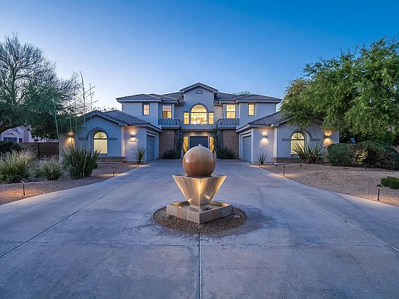 Fantastic Luxury Home in Gilbert! Toll Bros. ''Mirador''floorplan features dramatic DUAL STAIRCASES, 5 large bedrooms, 4.5 bath, 4 car garage w/extra long driveway with a water fountain. Large 1/2 acre lot! ALSO: Seller Chef's Kitchen features NEW Carrara marble throughout. Also has Dual Bosch dishwashers, Wolf 5 burner dual stack ''true simmer'' gas cooktop w/Pot Filler. NEW 60 bottle wine storage w/custom 9' glass doors. NEW carpet! NEW Carrara Marble floors! MB has Marble from Spain. Acoustically engineered Theatre w/stadium seats, NCAA (75') pool, Putting Green w/chipping pad! ''DOCUMENT Tab'' has list of all upgrades- Seller has put approx. $250k in upgrades/improvements over the years! See ''PHOTO Tab'' for ''3D'' Tour and a Videotour!