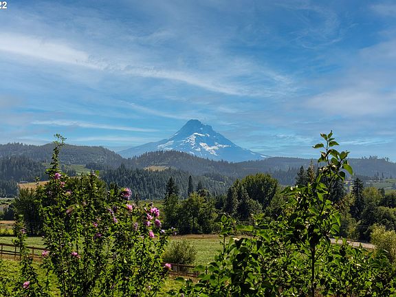 Come enjoy this peaceful, rural setting, surrounded by picturesque farms, rolling hills, and stunning views of BOTH Mt Hood and Mt Adams. This single-level home is strategically tucked amongst large trees, with fully fenced pasture, multiple out buildings, and plenty of space for outdoor entertaining. Inside you'll find custom built-ins, spacious bedrooms, and updated bathroom.