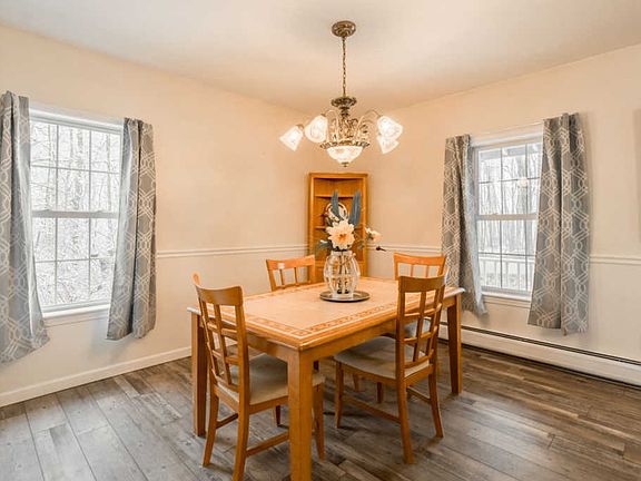 Lovely 3 bedroom colonial on an acre of land! The inviting front porch welcomes you home with space to sit, relax, and enjoy the lush surroundings. Just inside, a formal dining room greets you with new luxury vinyl flooring. Just beyond the dining room is a cozy living room thatâs filled with natural light and is perfect for enjoying quality time with family and guests. The large eat-in kitchen offers plenty of cabinet space, a breakfast peninsula with space for seating, and a good amount of room for a dining table. New luxury vinyl flooring is also found in the hallway and half bathroom, while new carpeting flows from the stairs up through the second floor hallway and bedrooms. The master bedroom will be your private getaway with 2 large closets and an en suite master bath with a large soaking tub and separate toilet & shower room. 2 additional bedrooms and a full bathroom can be found on the second floor. Other features include fresh paint in the guest bedroom and a new toilet in the hallway bath. Outside, take advantage of your private backyard with space for gardening, recreation, a BBQ, and more. This property borders land that is in Vermont land trust, adding peace and privacy to your daily life. Great location less than 10 minutes to schools and Route 7, and just 15 minutes to Lake Champlain!