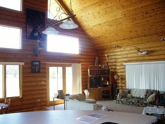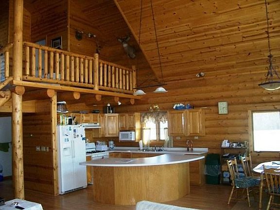 Authentic log home, was builders model when new! 2 bedroom, 2 bath home also has loft area which can be used as family room or office. Home and garage both feature steel roofs. contractor used 7 year dried Lodge pole logs so no shrinkage, settling, nor shifting as with other log homes. Spacious floorplan. Enjoy the 3.46 acres with approx. 200' frontage on small Hizer Lake. Additional 2.54 acres available. Hizer Lake is approx 33 acre wildlife pond.