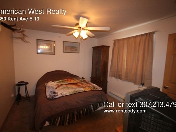 SCHEDULE A SHOWING ONLINE AT: showmojo.com/lh/ab0ac040e2 Check out this ground floor condo built in 2013! Features two bathrooms, one attached to the main bedroom. Stackable washer/dryer, fridge, stove, microwave, and dishwasher. Walk out the sliding glass door to a small patio, perfect for grilling or enjoying the shade in the summer evening. Energy efficient. No dogs or smokers. NOTE: Pictures and video may be of a different unit of the same layout and quality. Contact American West Realty for more information or to apply. Air Conditioning Window Units Cable Ready Ceiling Fan Garage Kitchen Dishwasher Kitchen Garbage Disposal Kitchen Microwave Kitchen Refrigerator Kitchen Stove / Oven Parking Assigned Pets No Pets Utility City Of Cody (Water, Electric, Sewer, Trash) Washer/Dryer In Unit
