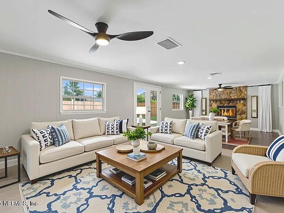 Welcome to 2850 Loran Dr E — a newly renovated brick pool home with stylish upgrades throughout. Inside, you'll find new luxury vinyl plank flooring and an open floorplan filled with natural light. The brand-new kitchen features a breakfast bar, stainless steel appliances, and a beautiful backsplash. A spacious family room offers a cozy stone fireplace and French doors that lead to a large in-ground pool and private fenced backyard, ideal for entertaining. Two bedrooms share a beautifully updated full bath, while the primary bedroom includes an attached half bath. Additional features include a 1-car garage and a central location with quick interstate access to anywhere in the city. Just 10 minutes to downtown, The Town Center, and San Marco's popular shopping and dining.