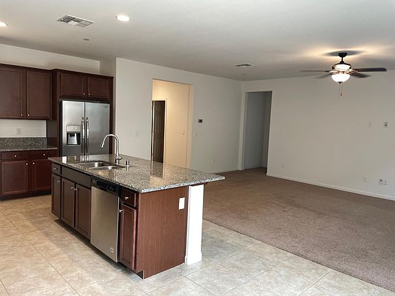Move in ready home, has Solar Panels, beautiful kitchen with stainless steel appliances and sink, pantry, granite countertops, and breakfast bar set up. Ceiling fans and modern lighting make the house more energy efficient, owner's suite has spacious walk in closet and beautiful glass shower, and double sinks. Auto opener in garage and low maintenance yard. Interested tenants must apply online, pay the applicable $30 credit fee per every occupant 18 and over, provide identification and income documentation. Approvals and deposit are subject to owner approval. We provide Refrigerator, washer and dryer with deposit. NO PETS. NO SMOKING Tenant is responsible for ALL utilities and yard care Solar production is credited to tenant towards monthly Bill, True up is tenant's responsibility. No Smoking. No Pets