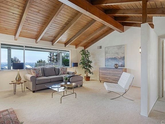 Gorgeous 180* Views from Palos Verdes & Catalina, down the Coast to Fashion Island and Disney/Angels fireworks to rolling hills and all the city lights in between. Large home at the end of a Cul de Sac (with only 10 homes), has a newer 50-Yr. roof, fruit trees & pool. Huge Master suite with his/hers closets, near by is another bedroom w/private bath & entrance (possible care-giver or office). Maids quarters off laundry & garage with another bath, 2 more bedrooms, a bath & private patio can be closed off for guest privacy. 6 sets of sliders allow you to access the wonderful back yard & pool, enjoy the expansive views from almost anywhere while brightening the home. The dbl. door entry invites guests into your large foyer and the 1st thing they see is the Awesome view through the large living room windows & open beam ceiling. Scraped ceiling throughout, huge formal dining room, dbl.-sided fireplace serves the family room & living room, large family kitchen with plenty of cabinets and a bright breakfast area with more wonderful views. All 4 baths & kitchen have some upgrades, yet this home needs remodeling to make it your own, providing Great potential to you. The Community offers 6 public tennis courts, dog park and award-winning Nohl Canyon Elementary school (1 block away).
