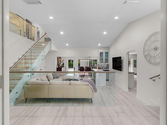 Mediterranean 2-story home w/modern country charm, located on an interior lot in a prime cul de sac location w/ great curb appeal. Master on 1st floor. This elegant home features many upgraded/updated amenities including a floating wood staircase w/custom glass railings a spectacular gourmet kitchen with granite, oversized island, stainless steel appliances and wood cabinets. Additional bonus rm or office on 1st floor. The upstairs features 3 large bedrooms. 2 zone a/c. A beautiful built in bar with fridge and separate wine cooler. Enjoy great entertaining both interior and exterior w/ large pool area overlooking freshly planted calusia low maintenance privacy hedge. Impact windows and doors, ''S'' tile roof, oversized paver driveway, front porchway and more. This spectacular home is conveniently located within Boca Raton city limits close to park, convenient to shopping, "A" rated schools, and houses of worship.