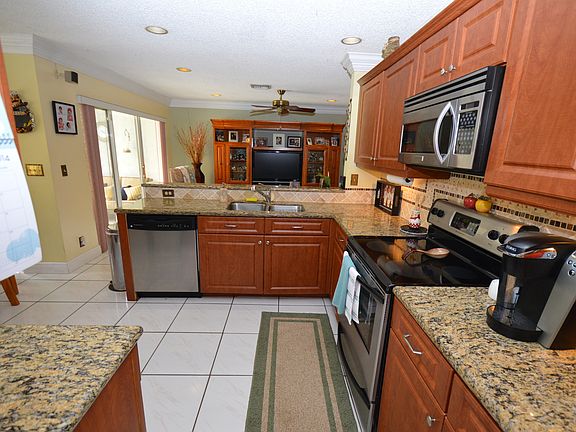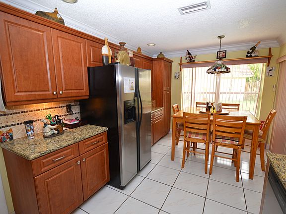 Gorgeous 4 bedroom 2.5 bath Pool home on large corner lot. Features a new roof in 2006, new AC 2010, accordion shutters, vaulted ceilings, crown molding, formal living room & dinning room followed by the family room and remodeled eat-in kitchen with walnut cabinets, granite counter tops & stainless steel appliances All bathrooms have been remodeled. Master bath features dual sinks separate shower and tub. Huge patio area perfect for entertaining with newer pool and lots of privacy. Shows like a model.