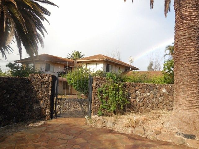 This Stately home on 2+ acres is gated and has many options that spark the imagination with all possibilities. The tennis court (game court). Its UpCountry elevation at 1400 ft lends itself perfectly to distant panoramic ocean and mountain views. Easily grow your own organic produce and fruit trees in this very private setting off Omaopio Rd, accessed by a private, flower-lined driveway. There is a huge (2400 sq ft) aluminum warehouse for storage, trade business equipment, or nurturing your garden seedlings. The texture of slate walkways brings an old world charm. Majestic Date Palms circle the property.