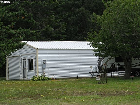 STUDIO, GARAGE OR SMALL HOME, you decide. Plenty of room for a new home or large pole barn or both. Stick built metal one room building with full bath and kitchen. Security doors on front and back and overhead doors for autos or toys. Almost an acre in town with city services. Lovely flat lot has apple and cherry trees. Hookups for RVs. Nice sunny location.