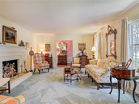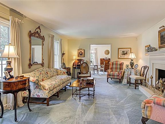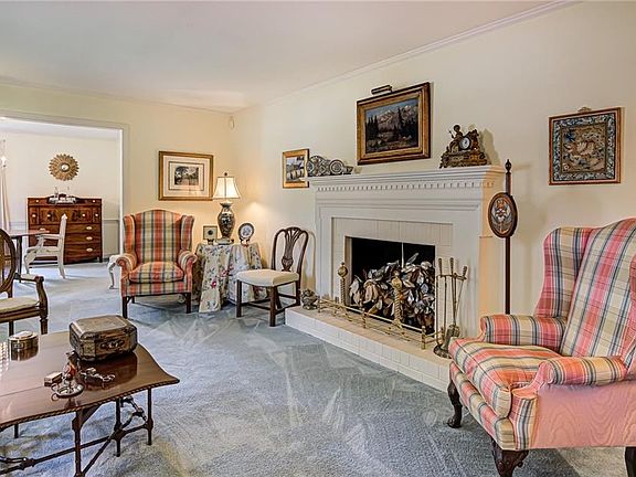Beautifully maintained brick home designed for easy living and elegant entertaining. Living room with beautiful fireplace, formal dining room, den with brick fireplace, built in shelves, ceiling beams and skylights. Sunlit kitchen has a removable island, bay window and breakfast nook. Main level primary suite, 3 guest bedrooms and laundry room. Wonderful deck and patio, circular driveway and ample off street parking. The lower level features a full kitchen, office, playroom, full bath, storage and 2 car garage. * Sprinkler System serviced by Carolina Irrigation.