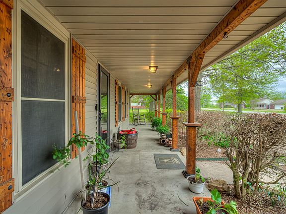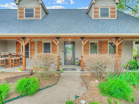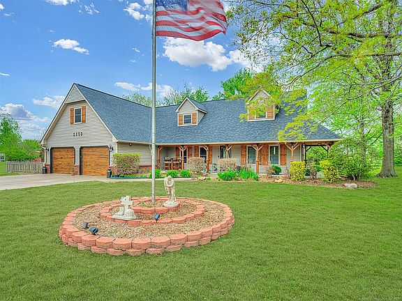Great 3 bedroom home with 2500+ sf of living area, 3 living areas, 1 car garage, two out buildings, fenced and cross fenced, mature trees and all on 13+ acres. Property backs up to the turnpike. Claremore School District.