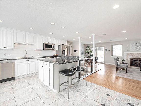 Remodeled and lovingly refreshed by the current owner, this Bear Valley mid-century ranch is a turn key opportunity that will not disappoint! Featuring 4 bedrooms (one non-conforming) and 2 baths, open floor plan, extensive remodeling including new paint, updated sliding door, newly finished oak flooring and other incredible updates make this home second to none in the area. Newer stainless steel appliances and slab granite kitchen counters, tiled bathrooms, professionally refinished cabinets and new backsplash, a beautiful family room gas fireplace, new 2 panel shaker solid core doors and updated trim throughout. The upgrades continue with "major system upgrades" including hot water heater, forced air furnace and A/C (installed 2021), whole house fan and new modern LED lighting in kitchen. The finished basement features a bedroom with an ample closet space and new paint. The open recreation room and huge storage area are perfect for all your needs which could easily be reconfigured to accommodate any personal touches. This space includes a laundry area with washer and dryer included in sale. The large 2 car garage features a 70K BTU heater, 50 amp electrical circuit, and nice garage door upgrades. Outside, a 11,100 sf yard features a covered patio, new 8’ fence, raised bed garden area, full sprinkler system, and a stylish custom designed storage shed. This lot is larger than most in the area. Located within close proximity to schools, shopping, and transportation- Don't miss out on this fantastic opportunity in the popular Bear Valley neighborhood!