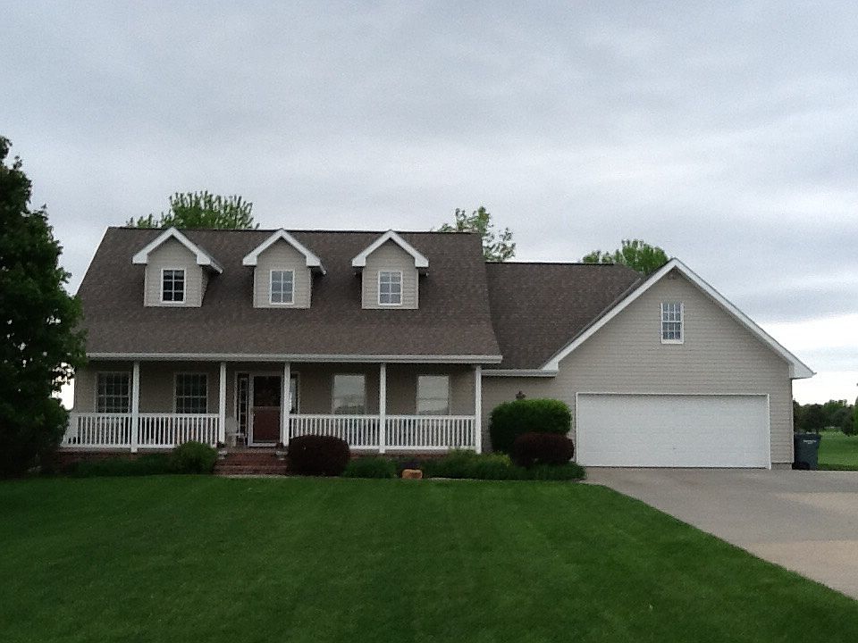 Custom built 1 1/2 story home on golf course. Move in ready 4 BR 3 1/2 bath home. Mstr BR on main with master bath and walk in closet. Spacious kitchen with lots of cabinets, dining area and large LR with gas fireplace. 3 BR on upper with large bath with double sinks and separate shower & comode area. Open staircase on upper/lower with beautiful white railing. French doors on fr formal LR. Colorlock hardboard siding, nice deck w/great view of the golf course. 2 car att garage w/3rd pkg stall concrete pad.