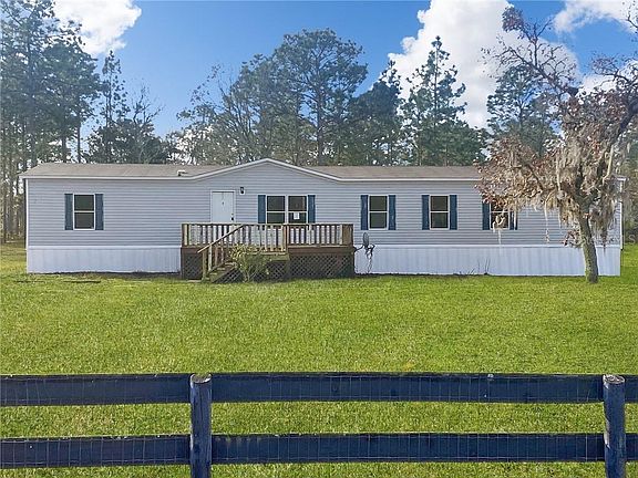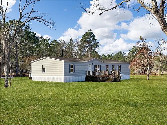 Williston Highlands! Welcome to this 4 bedroom 2 bath mobile home located just outside of Williston, FL. This home has over 2000+ square feet of living. The great features include 3 guest bedrooms all with walk in closets, a guest bathroom, an open floor plan living and dining space, a large kitchen with tons of cabinets and counter space, a nook for a table with a window overlooking the back yard, a separate family room with a stone wood burning fireplace and built in cabinets, inside laundry room and a large master bedroom with an equally large walk in closet and master bathroom. The master bath has double sinks, a walk in shower and a sunken tub. One of the best features is the whole house features brand new flooring! Now as we step outside you will take in the lush green grass an the privacy of this 1.25 acre corner lot! This 1.25 acre property is completely fenced and move in ready. Conveniently located less than 14 miles to HITS showgrounds, 24 miles to WEC, 11 miles to Williston & 23 miles to Dunnellon for all your shopping needs!