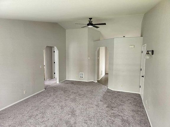 - Breakfast Bar, Ceiling Fan(s), Fiberglass Stall Shower, Laminate Counters, Linen Closet, Open Floorplan, Pantry, Primary Downstairs, Shower/Tub Combo, Vaulted Ceiling(s), Walk-In Closet(s)