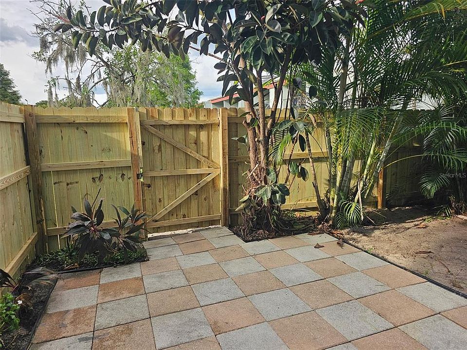 Great one bedroom condo. Granite countertop, stainless steel appliances. Tile throughout. Great fenced in back yard area with a paved area and a grass area for a small garden or if you have a pet. Ceiling fans in living room and Master bedroom. First floor unit so no stairs to deal with. The community offers a gorgeous huge swimming pool, tennis and basketball courts and work out gym. Washer and Dryer hookups. Water/Sewer/Trash is included in the rent. Available 9/19/2025. Go to Zillow to apply, make sure you have been prequalified prior to applying.