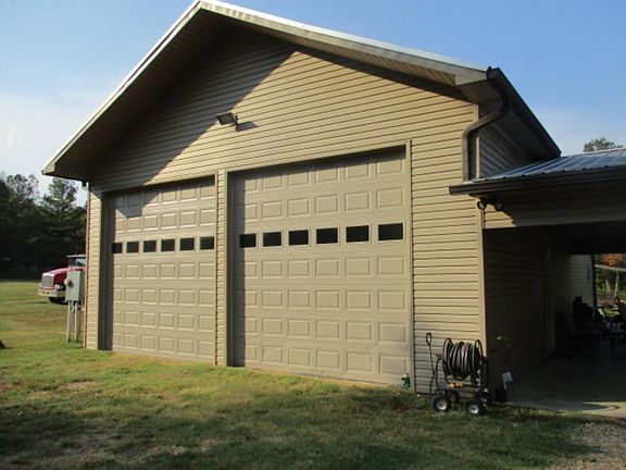 If you are looking for a modern southern-style home on 71/2 acres built in 2016, this 3 BR 21/2 BA 2,086sf may be the one. The home is all electric w/pellet stove, and has double ovens, granite w/tile backsplash, large spacious living room. There is a 30'x30' covered breezeway/patio w/a rock fireplace and an attached 30'x50' shop w/three 12' doors. There is a 70'x62' block shop (inside measurement) that is less than one year old and has three drive-thru bays, gas heat, 12' doors, heated and cooled office area, two 12,000lb lifts (stay w/the shop). The property is all open w/several large shade trees and a pond stocked w/catfish and brem. Other amenities are a storm cellar, 8'x10' outbuilding, and a 48'x40' pole barn that is framed (needs roof).