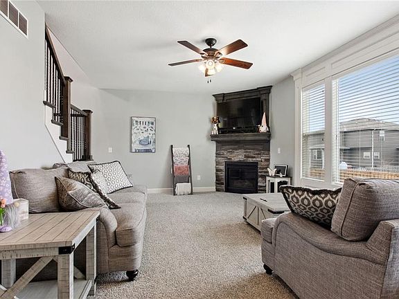 - Features: Carpet, Ceiling Fan(s), Fireplace