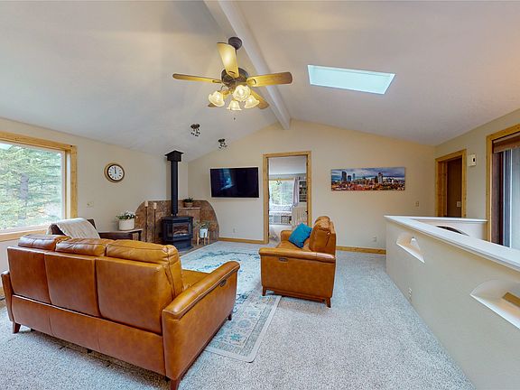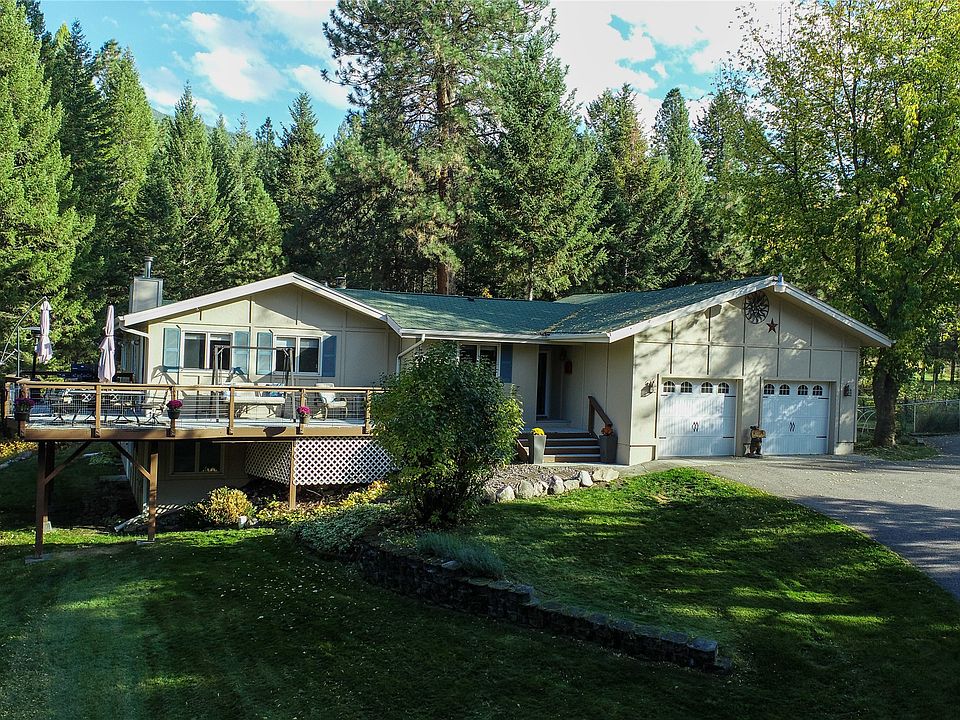 A Montana dream come true! Finley Creek runs through the property. This beautiful 4 bedroom, 2.5 bath home on 5 acres, has an updated open floor plan. In the living room you'll find vaulted ceilings and the beautiful pellet stove to provide a warm and cozy atmosphere. In the kitchen you find granite countertops, beautifully tile floors and matching appliances. The dining area is a perfect space for friends and family and leads onto the deck. Listen to Finley Creek from the oversized deck with beautiful views. The Master bedroom is a large space, with an electric insert to provide warmth. The master bath has a large soaking tub and walk-in shower and tiled floors. Over 2,736 Sq ft of living space to enjoy along with a two car oversize garage. This private, end of the road property backs to Tribal Land. Great out buildings including 24 x 26 enclosed pole barn with lean to's on each side, garden shed/greenhouse Call Bob Olson at 406-239-0435, or your real estate professional. Carport with electric for the camper/boat, and a chicken coop and Property is fenced.