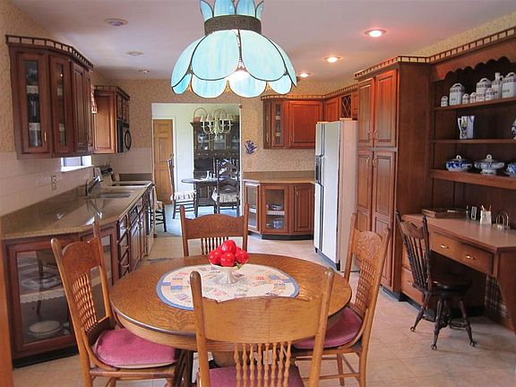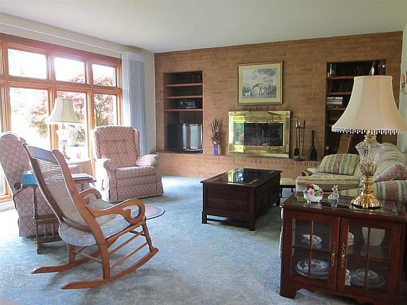 Very well kept brick Ranch on beautiful 1.4 acres includes 3 lg bedrooms with HDWD floors, 2 full baths, spacious LR w/wall of windows & brick FP, solid wood doors, loads of natural light thru-out home, eat-in kitchen w/walkout, relax/entertain on patio, flat backyard, mature trees, full bsmt w/walkout, circle driveway, oversized 1 car attached garage + huge 3 car detached garage w/BA & electric.