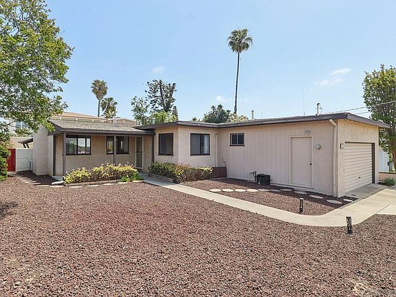 Bring your inspiration and creativity to reimagine this property, situated above street level on a spacious 7,800 SF lot, this home presents an opportunity to update and customize in a sought-after neighborhood. A second-story addition could capture panoramic water views. The single-level floorplan features an open concept living room with original parquet flooring and fireplace and sunroom. Large open kitchen with breakfast bar, ample cabinet space and adjacent dining area. Three bedrooms plus a versatile bonus room provide options for a 4th BR, home office or guest space. The oversized backyard with large patio ideal for outdoor living and entertaining. Drought tolerant landscaping with over 20 varieties of mature plants and shrubs, including Chinese elm, asparagus fern, crimson bottlebrush and many more. Interior features include ample storage with multiple hall closets and linen cabinets. Mini-split units service the living room and one bedroom. The two-car garage has a provides additional storage space and has a 220 outlet. Clairemont Village is a short stroll away, offering various stores, restaurants, and services such as Sprouts, Starbucks, specialty shops, and eateries for everyday essentials.